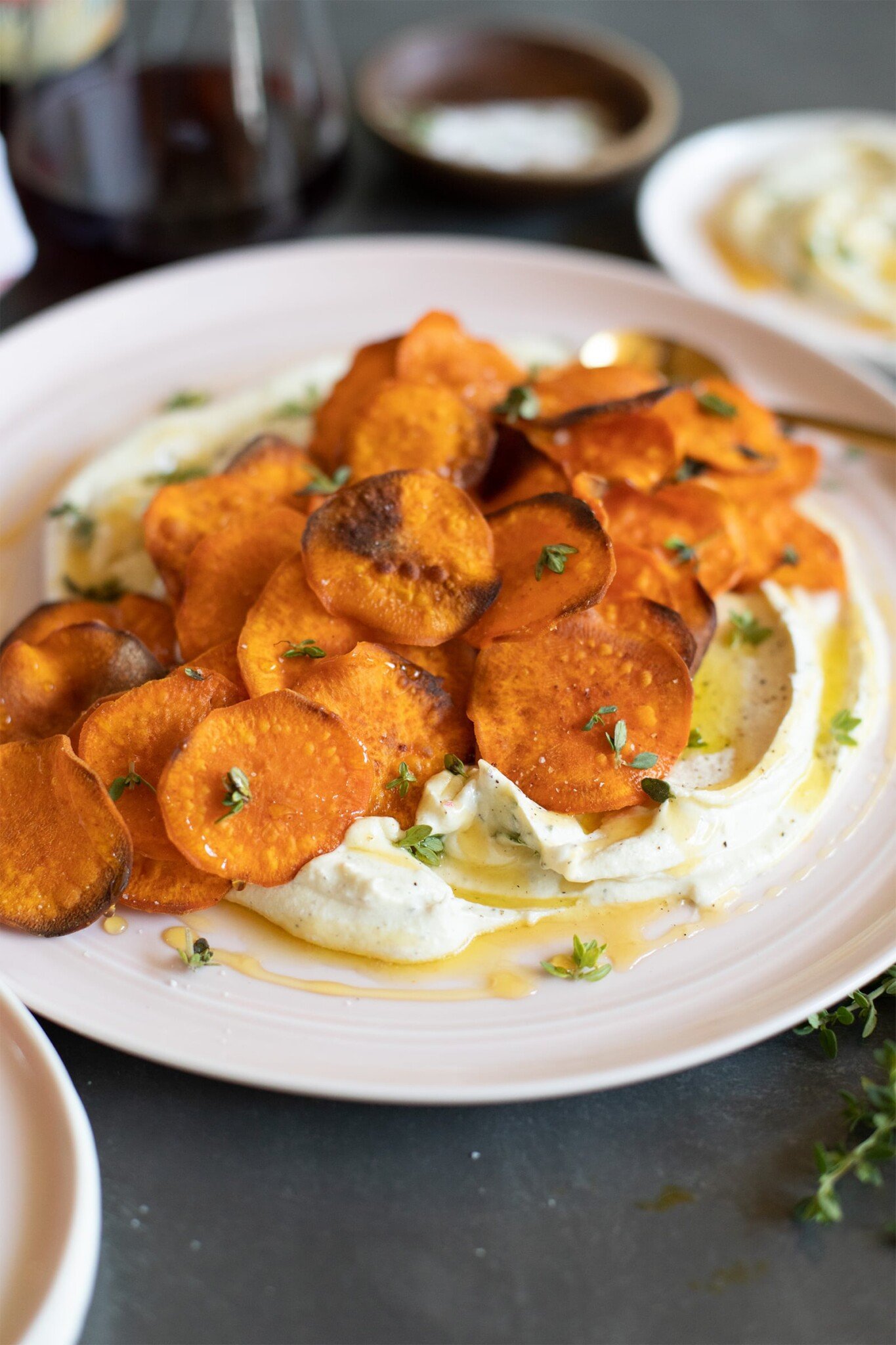 Roasted Sweet Potato Chips with Whipped Goat Cheese Recipe