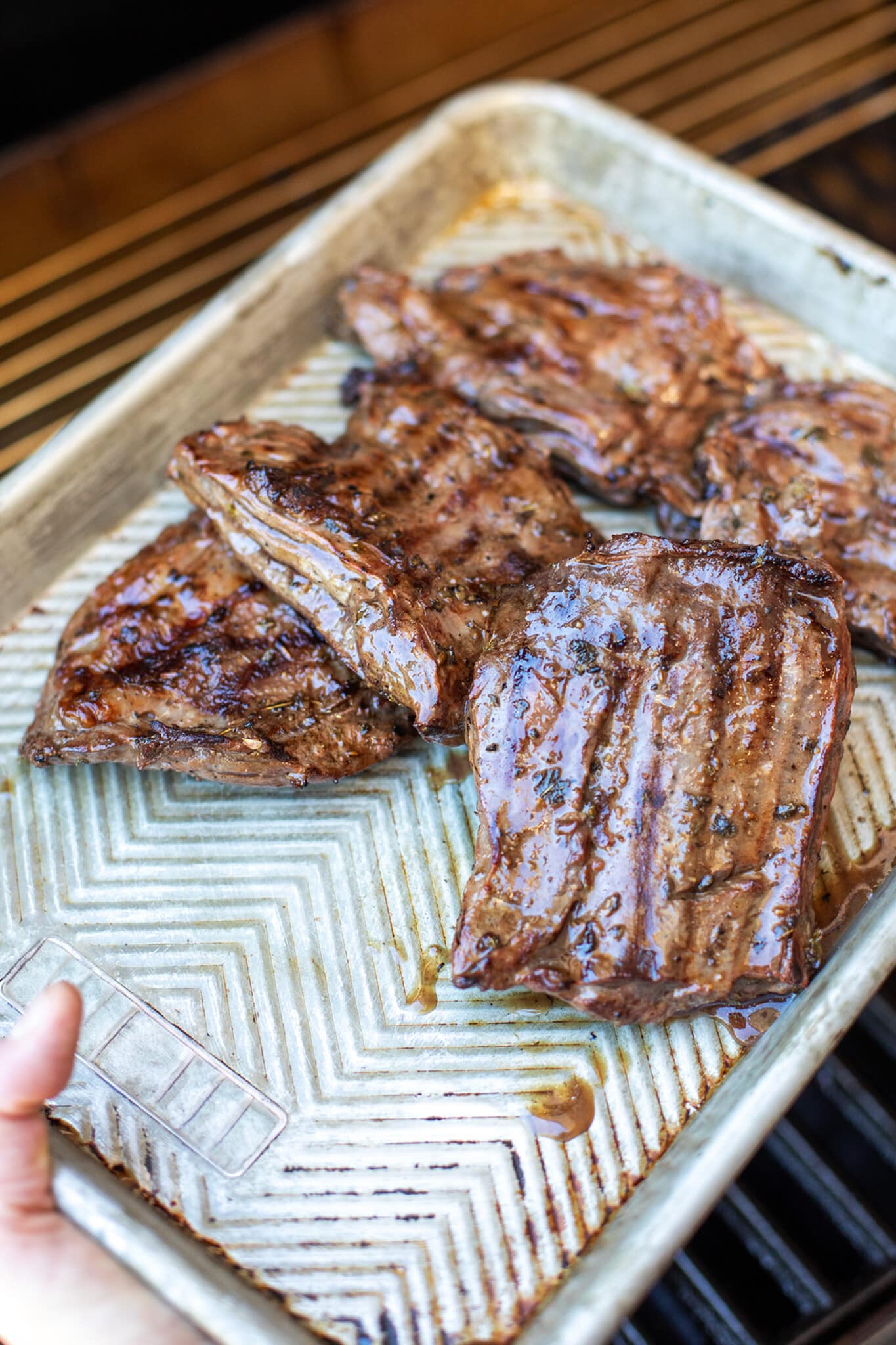 - Cook hot and fast: Direct heat on an outdoor grill, grill pan, or cast iron skillet over medium-high heat gives you a nice char without overcooking. We heat the grill to 425°F and then cook the meat with the grill top down so it is blazing hot while it cooks.