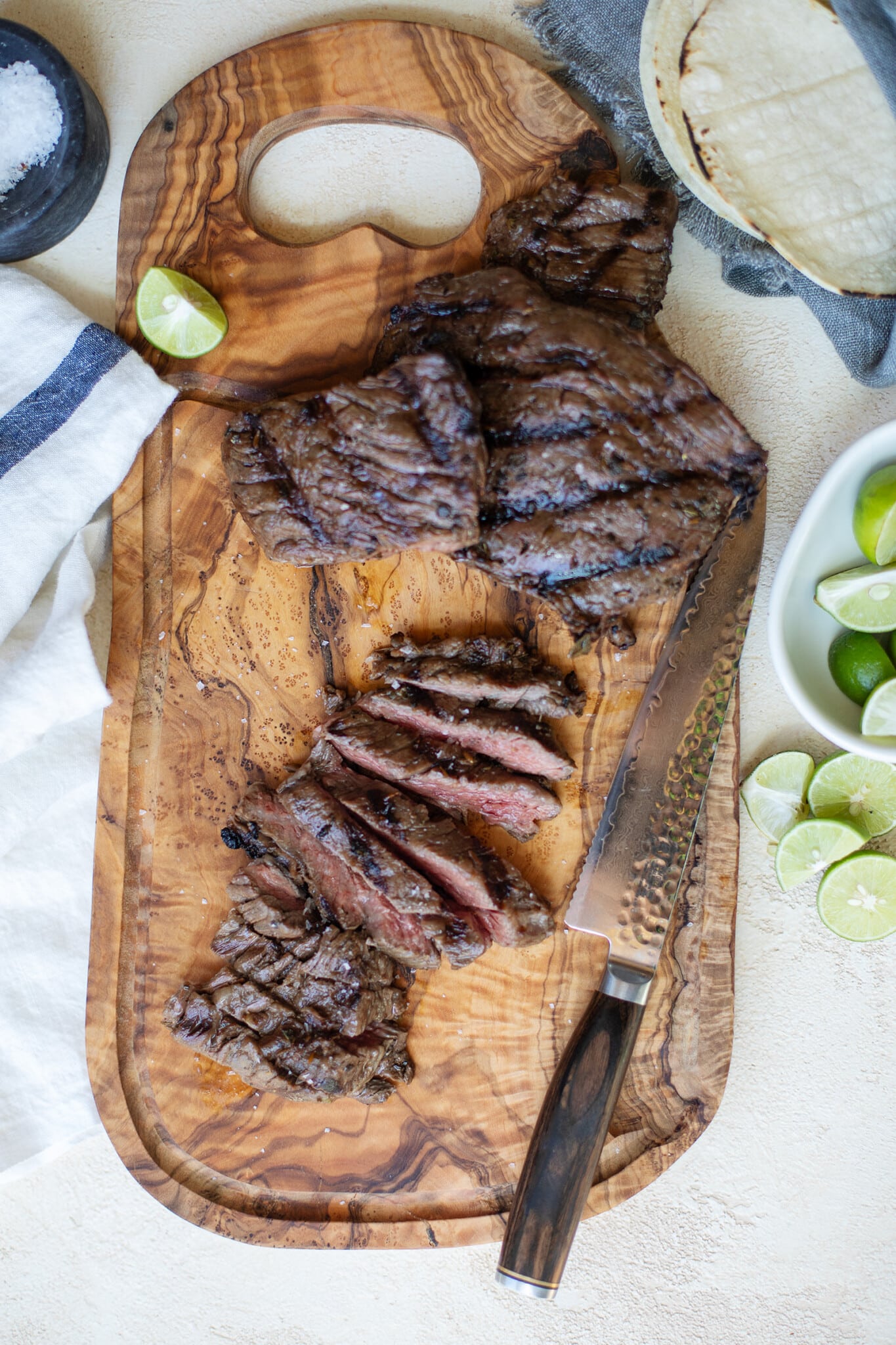 Traditional carne asada calls for skirt, flap, or flank steak. These delicious, well-marbled cuts are known for their bold flavor. Those same cuts would work well here, but you do want to make sure you follow a few key tips: