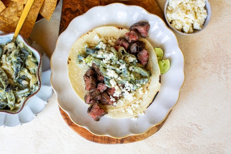 Creamy Rajas and Steak Tacos Recipe