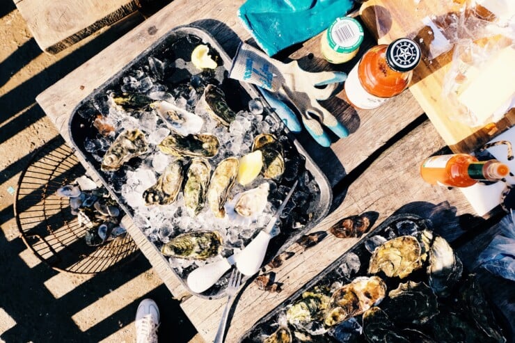 At select oyster farms like Tomales Bay Oyster Company, you can purchase oysters to shuck yourself at their picnic tables. Some spots provide tools and instruction, while others are strictly bring-your-own-gear, so check the specific farm’s policies before arriving.