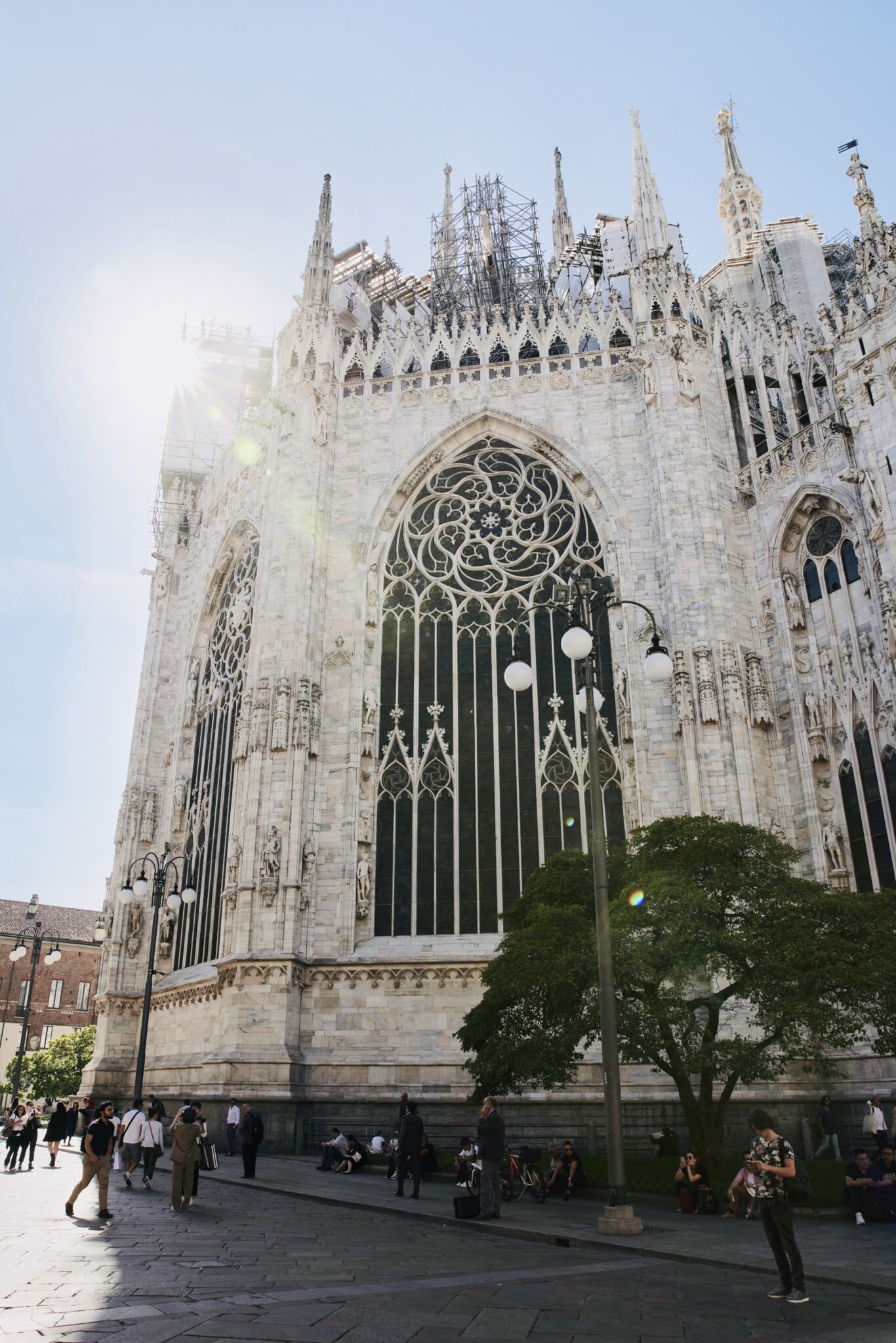 Yes, we’re separating the Duomo rooftop terraces from the inside of the Duomo because they absolutely belong on any list of what to do in Milan. Walking along the rooftop is one of Milan’s most unforgettable experiences. And it offers sweeping views across the city and to the Alps on clear days.