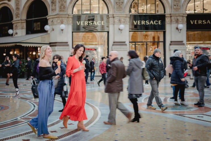Bordered by the famous shopping streets and Via Montenapoleone and Via della Spiga, this luxury shopping district is also nicknamed the Quadrilatero della Moda (or fashion rectangle). It’s home to major fashion brands like Prada, Louis Vuitton, Versace, Gucci, and more. Even window-shopping is dazzling here, so we suggest a visit even if you’re not buying anything. This is also where you’ll find models, Italian actors, and influencers wandering around casually, so it’s great for people watching as well.